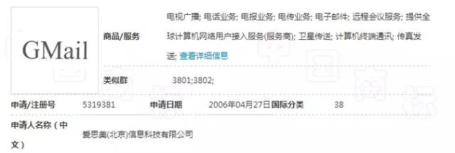 由于众所周知的原因,Gmail邮箱服务在大陆并不能使用,但是,谷歌对Gmail的商标保护却没有停止。