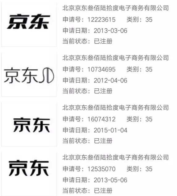 你以为刘强东是靠运气捡到的这枚商标?那你就太小看他了,其实从2012年起,也就是撤销注册复审的尾声,刘强东就开始陆陆续续的在35类申请自己的京东商标。