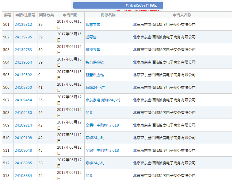 但其实,在很长一段时间内,京东申请35类(替他人推销)的商标一直没通过。也就是说,京东的命门掌握在别人手中。