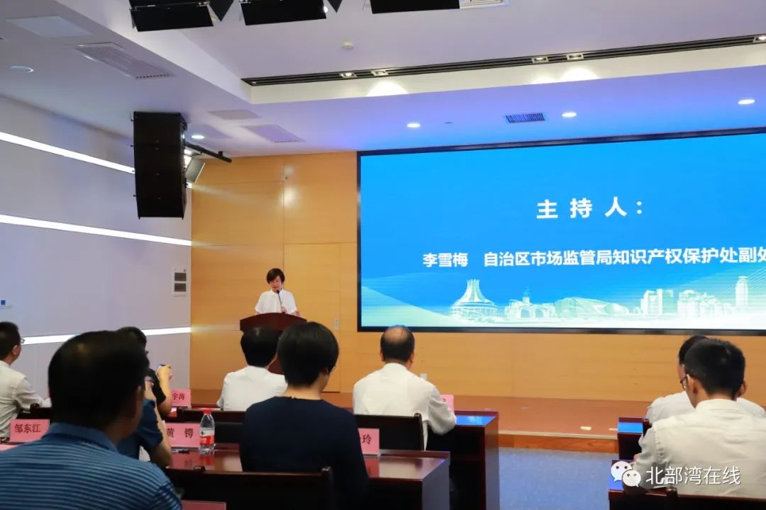 自治区市场监管局二级巡视员宋洪浪在会上致辞,他强调保护知识产权就是保护创新,要打通知识产权创造、运用、保护、管理、服务全链条。指出自治区出台《关于强化知识产权保护的实施意见》,全区推进知识产权保护改革举措落地见效,有效发明专利达2.6万件,每万人口发明专利拥有量5.39件,有效注册商标34.14万件。2020年中央对地方党委政府知识产权保护工作考核,广西排在全国良好档次,为西部省区市前三名。国家知识产权局广西业务受理窗口整合完成,实现了23项专利、商标等知识产权业务集中受理。